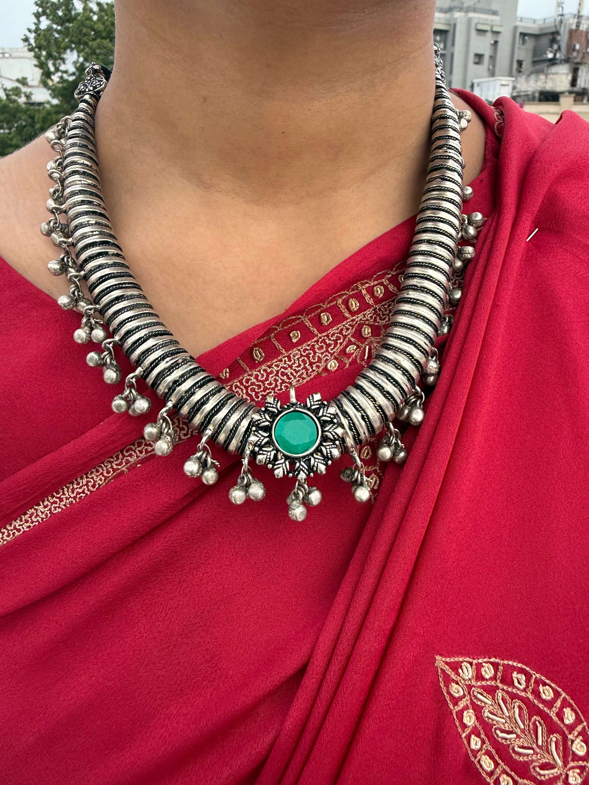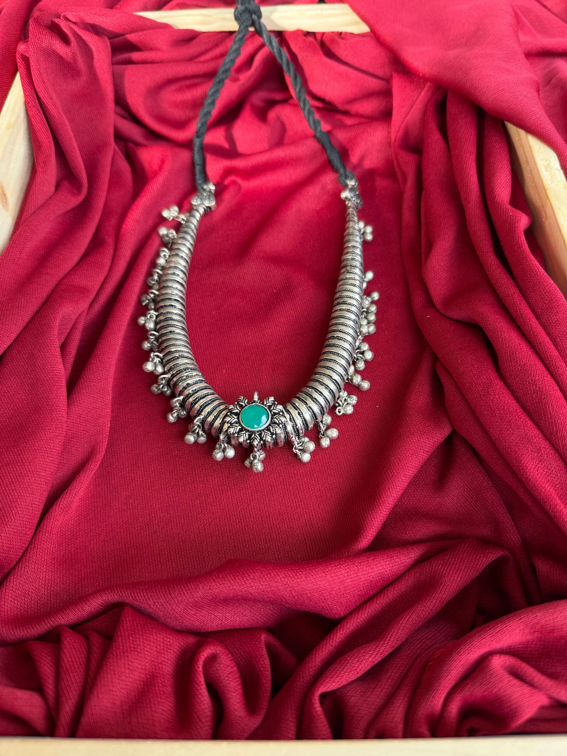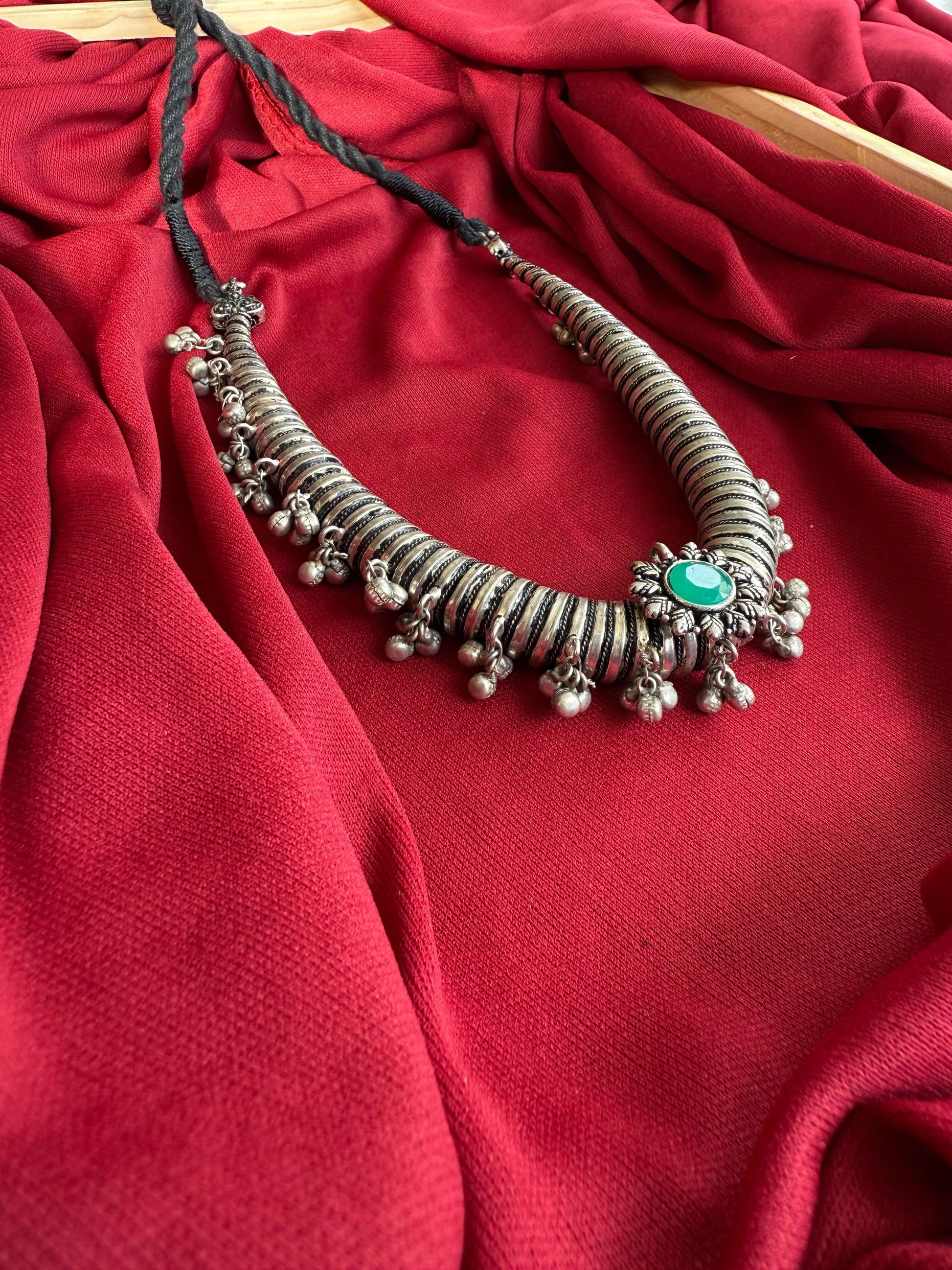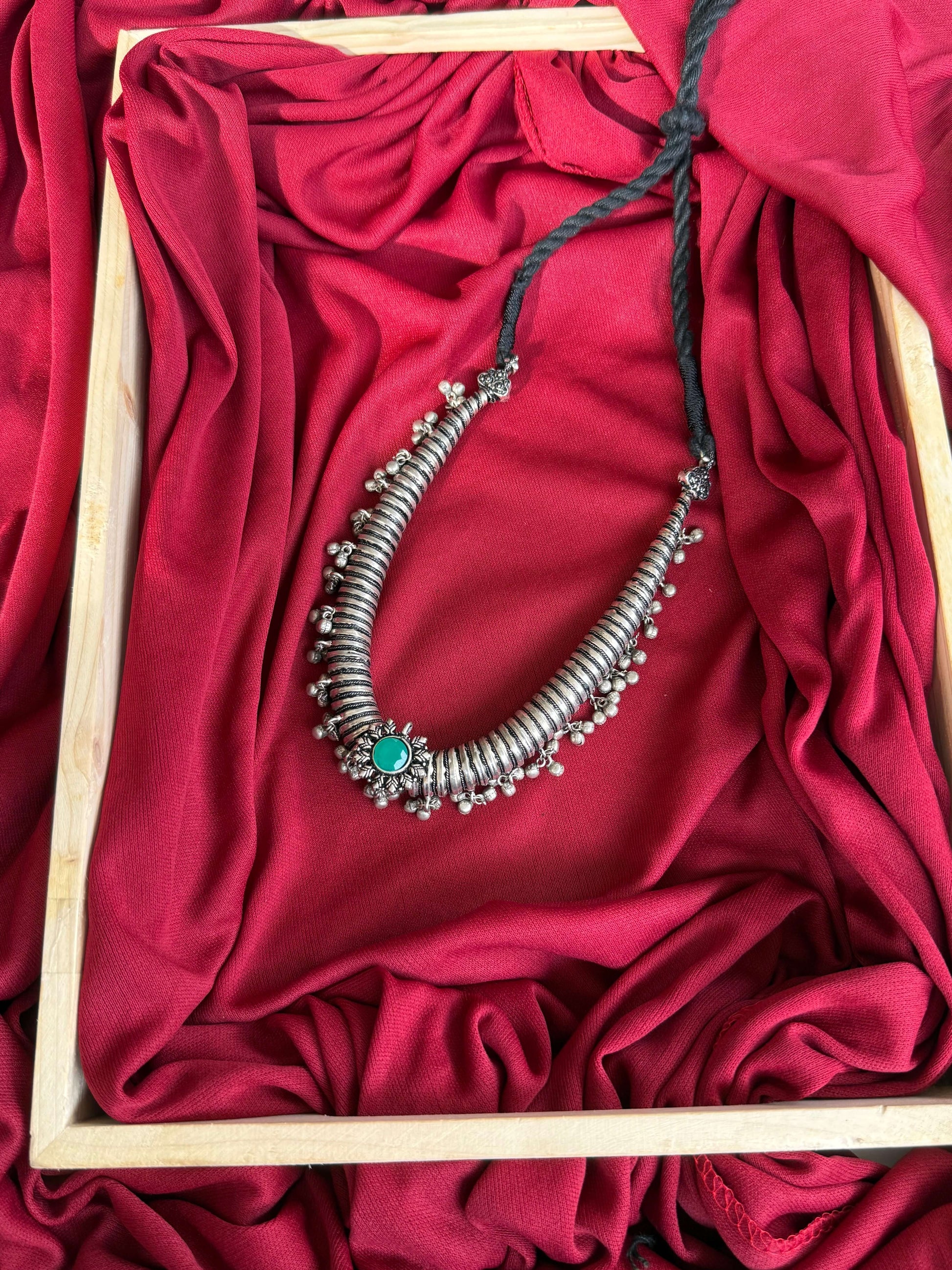 Step into the world of fierce tradition with our Classical Tribal Kathiyawadi Necklace, a bold blend of tribal artistry and minimal structure. Designed with signature pipe-style elements in oxidized silver, this piece reflects ancient vibes with a raw modern edge.