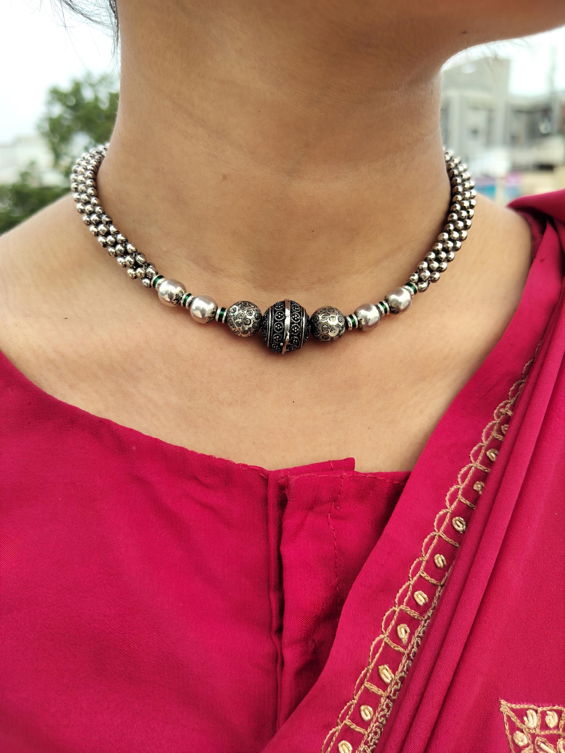 Tap into your inner strength with the Oxidized Divine Rudraksh Chain, where spiritual energy meets rustic elegance. Featuring sacred Rudraksh beads combined with a bold oxidized silver finish, this chain is more than just an accessory — it’s a symbol of power, protection, and peace.
