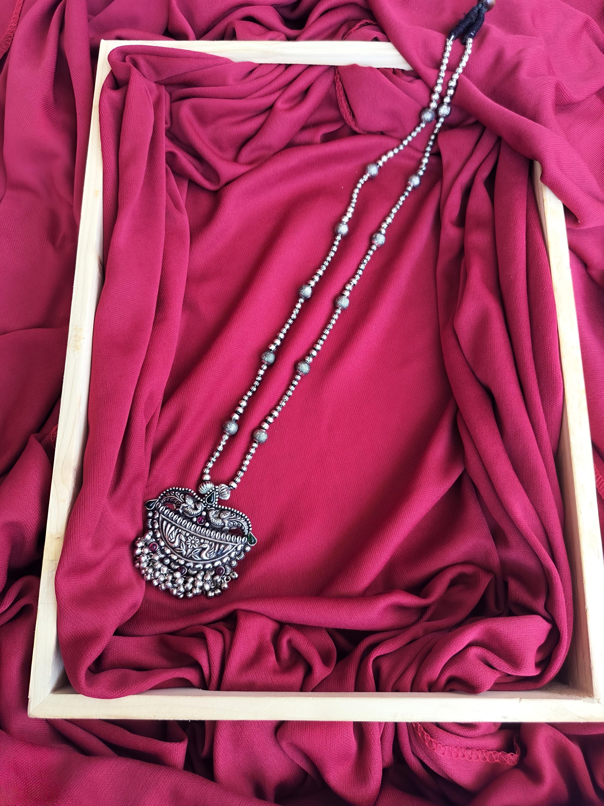 Tap into timeless tradition with our Oxidized Rudraksha Long Necklace — where spiritual energy meets ethnic elegance. Featuring sacred Rudraksha beads paired with an antique oxidized silver finish, this necklace is more than just jewelry — it's a vibe that radiates power, peace, and presence.